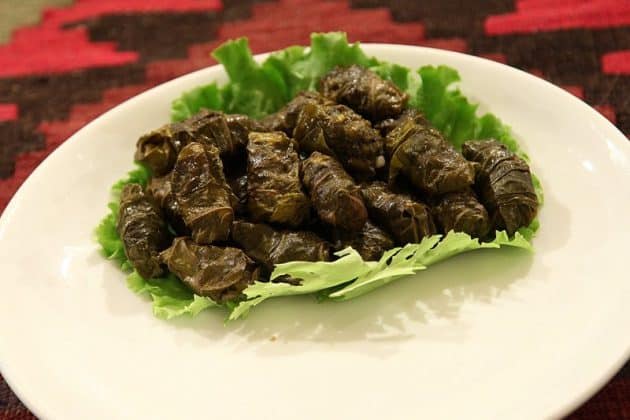 يوضع ورق العنب في أطباق التقديم، ويقدم وهو ساخن.