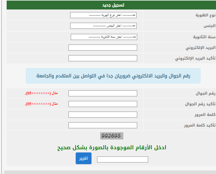 وبعدها يتم تسجيل البيانات المطلوبة، وتقديم طلب القبول.